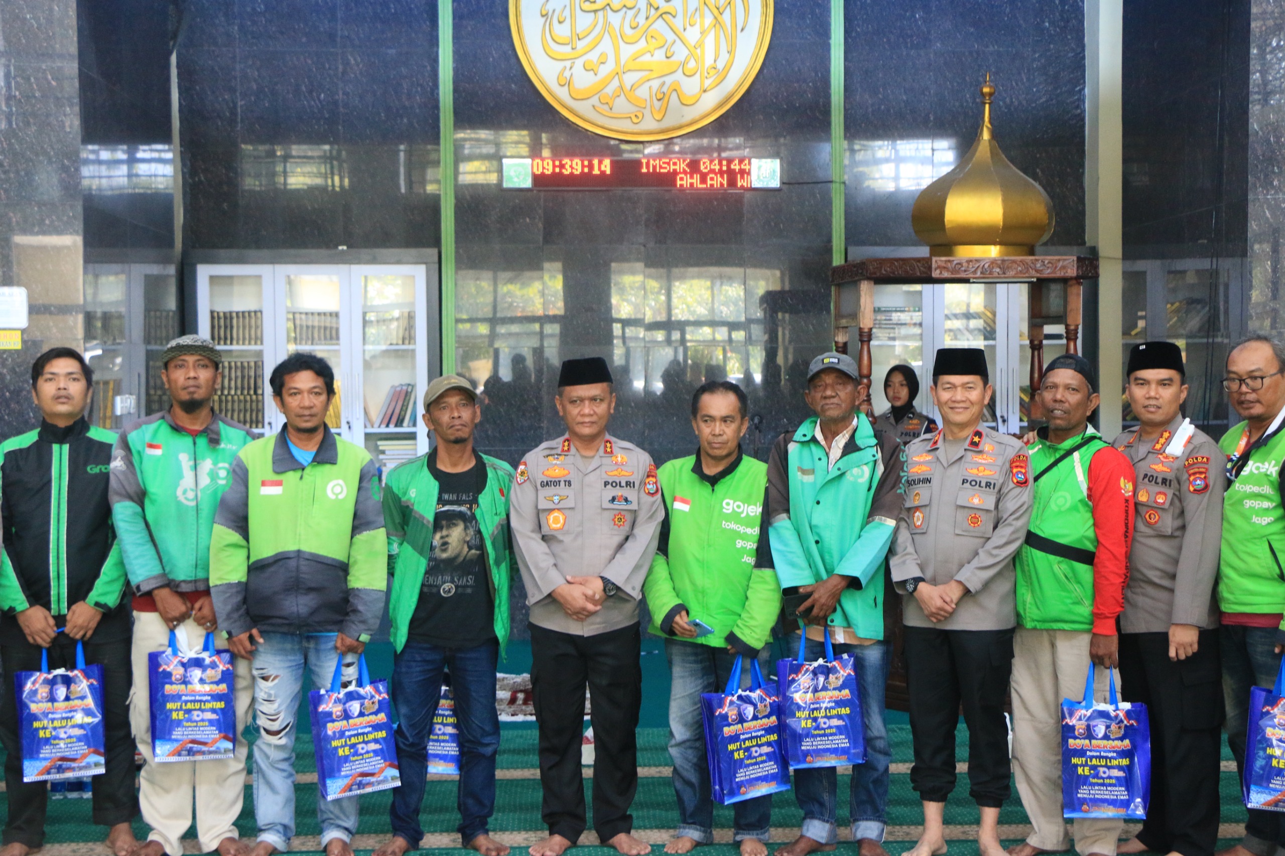 Sebagai wujud kepedulian, dalam kesempatan ini juga diberikan bantuan kepada perwakilan pengemudi ojek online yang hadir, sebagai bentuk apresiasi atas peran mereka dalam mendukung tertib berlalu lintas.