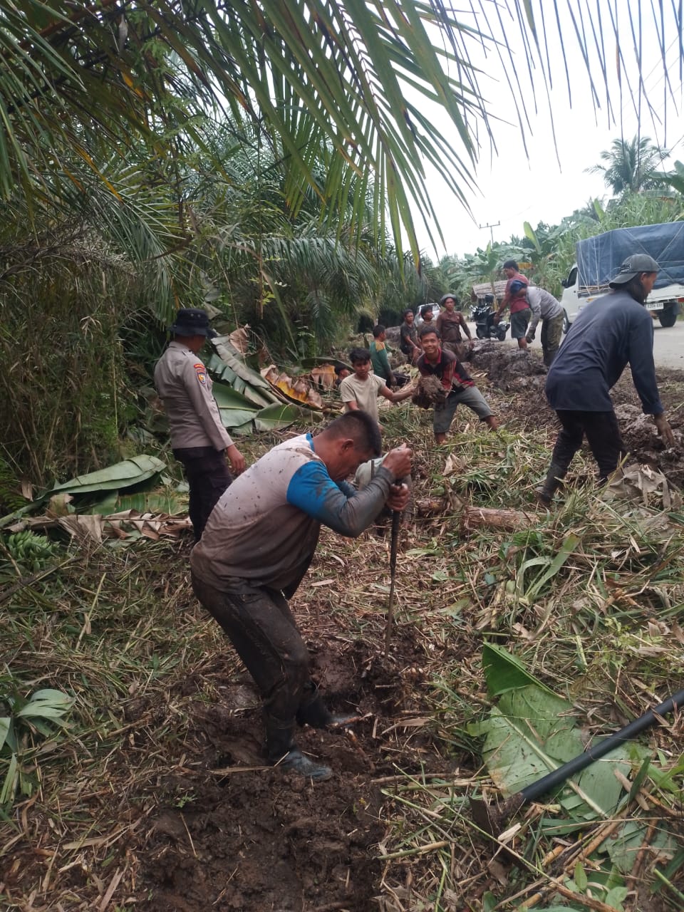 Gotong Royong Polsek Batang Tuaka dan Masyarakat Mengantisipasi Bencana Alam.