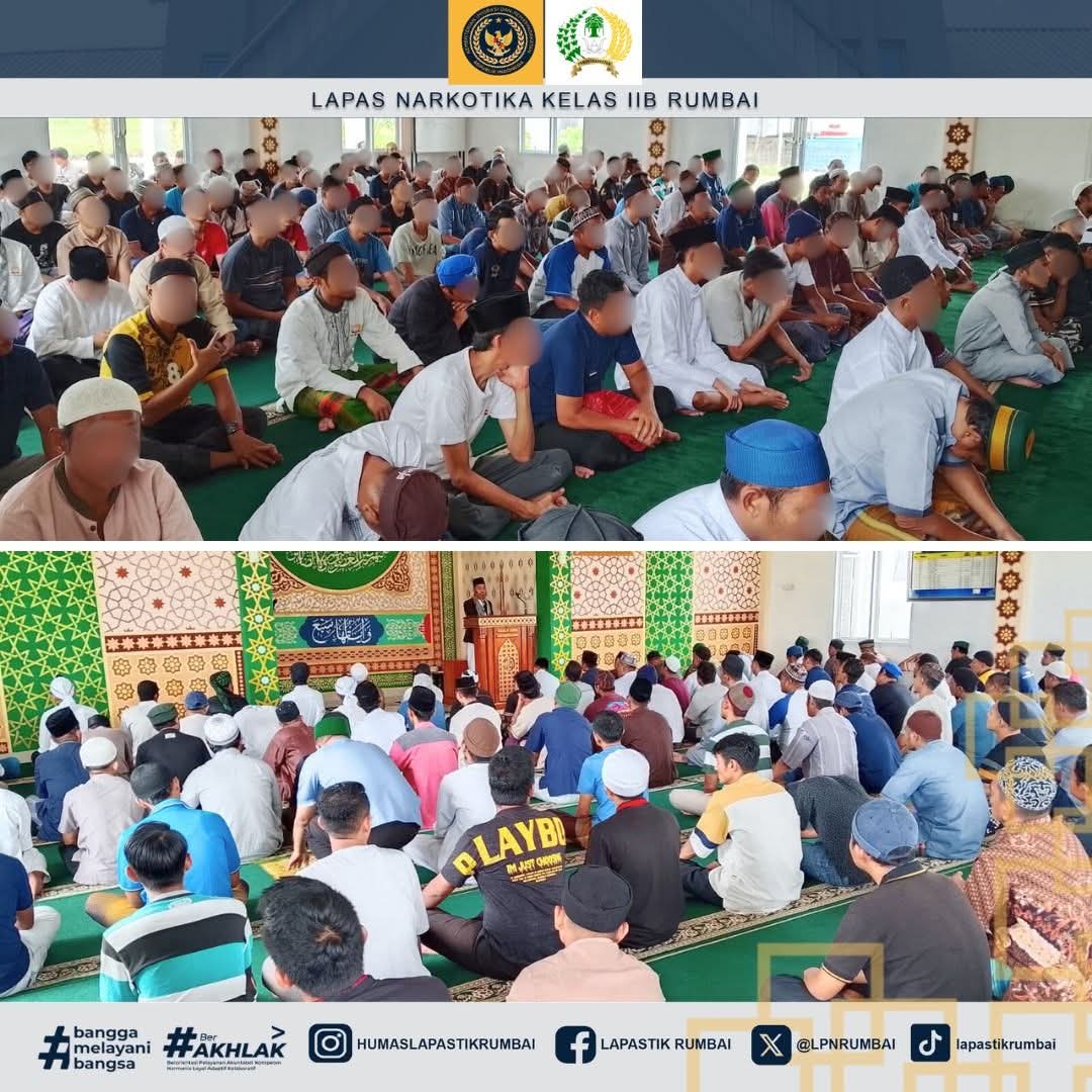 Kegiatan Sholat Jum’at ini menjadi bagian dari program pembinaan kepribadian di Lapas Narkotika Rumbai, yang bertujuan membentuk karakter warga binaan agar memiliki bekal spiritual yang kuat sebagai landasan dalam menjalani kehidupan yang lebih baik di masa mendatang.
