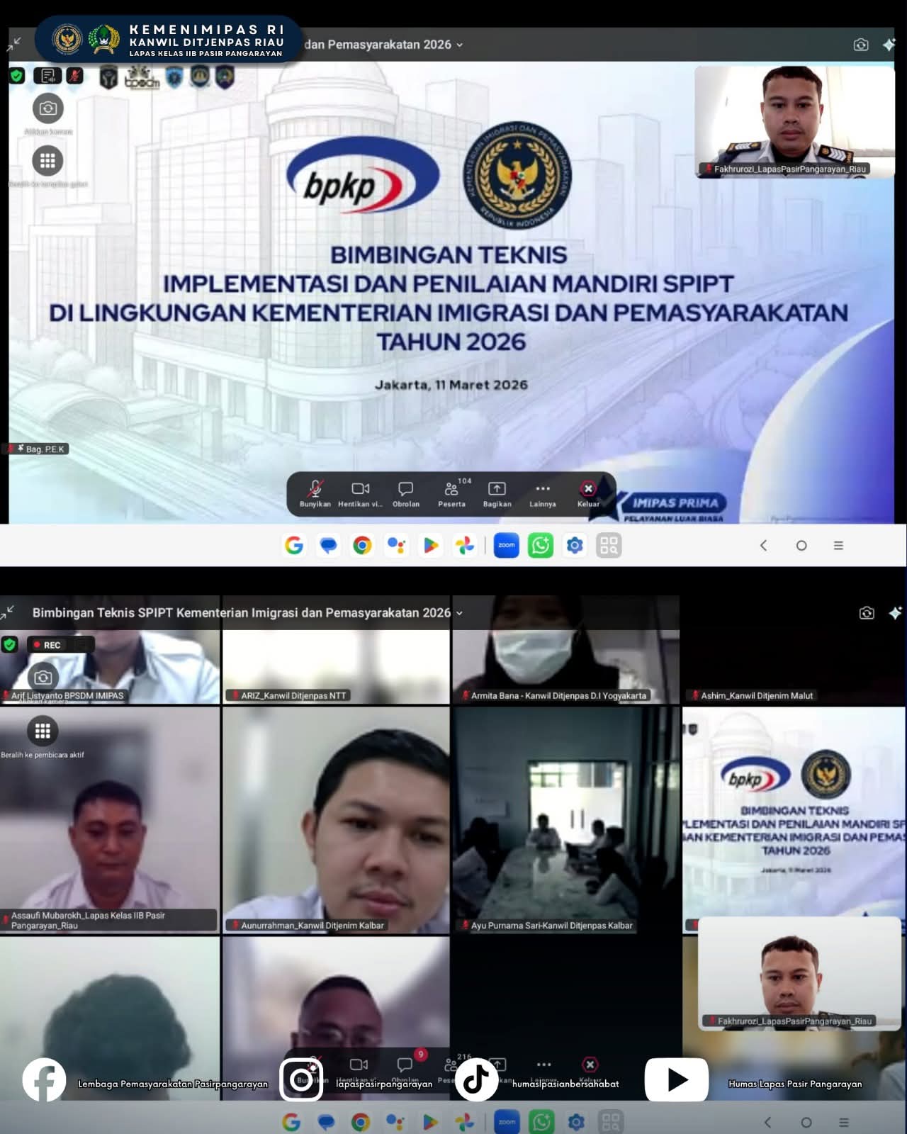 perisainegri.Com _ Pasir Pengaraian – Operator Sistem Pengendalian Intern Pemerintah (SPIP) dan perwakilan Satuan Tugas Operasional Kepatuhan Internal (Satops Patnal) Pemasyarakatan Lembaga Pemasyarakatan (Lapas) Kelas IIB Pasir Pangarayan mengikuti kegiatan Bimbingan Teknis (Bimtek) pengisian kertas kerja Sistem Pengendalian Intern Pemerintah Terintegrasi (SPIPT), Rabu (11/3/2026).