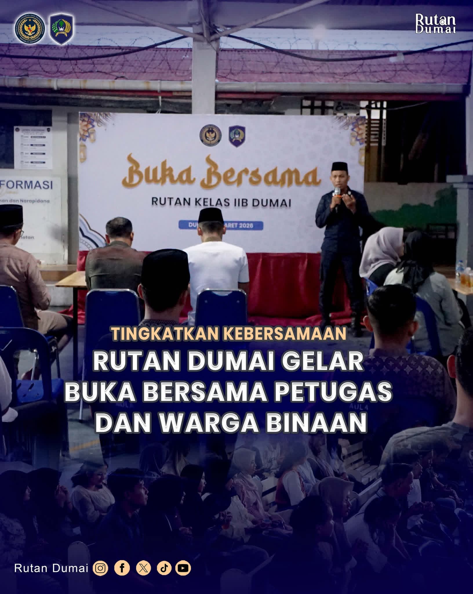 perisainegri.Com _ Dumai – Suasana penuh kehangatan dan kebersamaan terasa di Rumah Tahanan Negara Kelas IIB Dumai saat pegawai dan warga binaan menggelar kegiatan buka puasa bersama, Selasa (3/3).